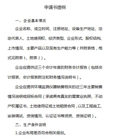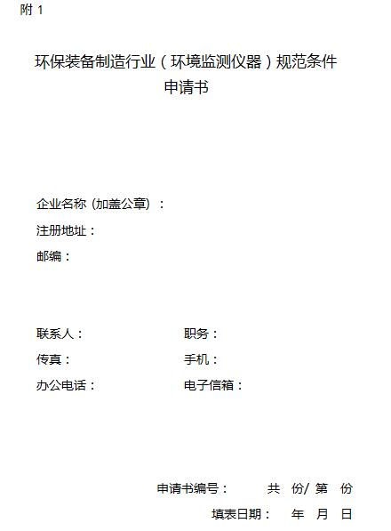3.申請企業(yè)需編制《環(huán)保裝備制造行業(yè)(環(huán)境監(jiān)測儀器)規(guī)范條件申請書》(格式見附1),并按要求提供相關(guān)說明材料。各省級工業(yè)和信息化主管部門依據(jù)本規(guī)范條件,對申請材料進行審查并提出推薦意見(格式見附2)。