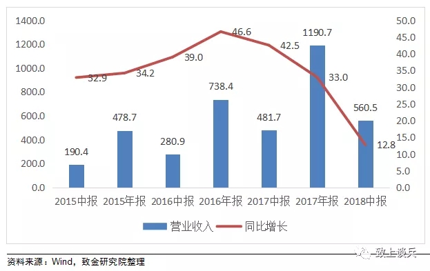 致金研究院選取總計41家滬深兩市環(huán)保板塊上市公司,2018年上半年實現(xiàn)營業(yè)總收入560億元,同比增長12.8%,實現(xiàn)扣非歸母凈利潤66億元,同比增長6%。整體而言18年上半年環(huán)保板塊增速下降明顯,但仍保持增長態(tài)勢。