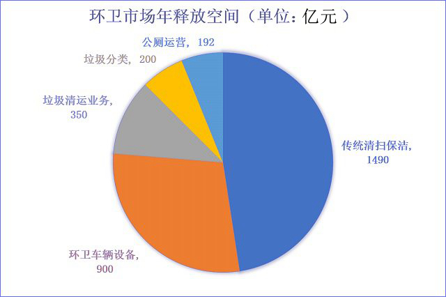 而根據(jù)E20研究院固廢產(chǎn)業(yè)研究中心的預(yù)測,至2020年,環(huán)衛(wèi)行業(yè)整體將釋放3000億元/年的市場空間,其中傳統(tǒng)清掃保潔業(yè)務(wù)約1490億元,環(huán)衛(wèi)車輛設(shè)備900余億元,垃圾清運業(yè)務(wù)約350億元,垃圾分類約200億元,公廁運營192億元。