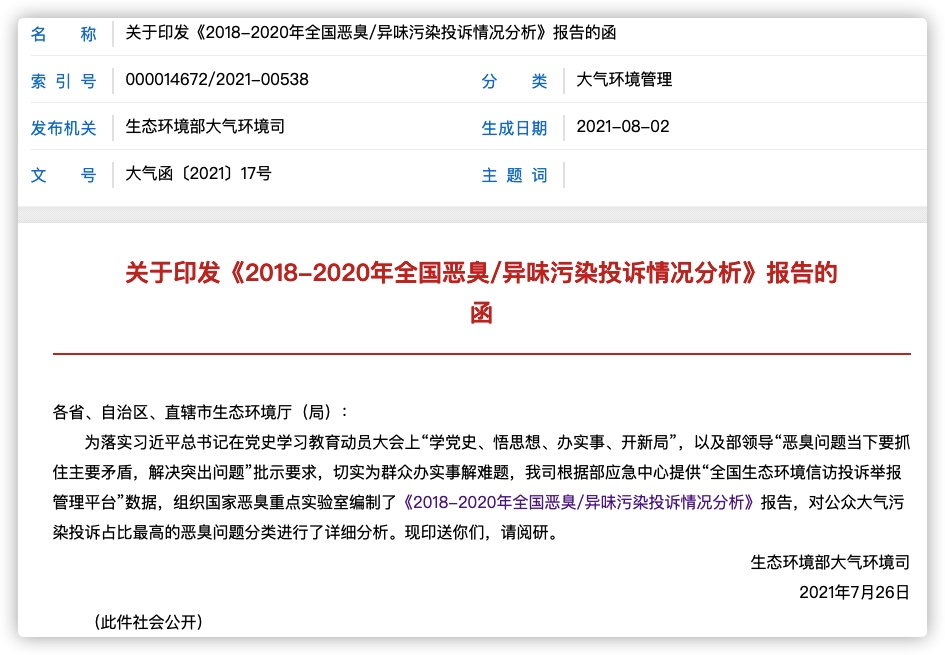 作者丨zzt來源丨環(huán)衛(wèi)科技網(wǎng)(ID: cnhuanwei)8月2日,生態(tài)環(huán)境部大氣環(huán)境司組織編寫的《2018-2020年全國惡臭/異味污染投訴情況分析》報告正式發(fā)布,報告稱,惡臭/異味仍是當(dāng)前公眾投訴最強(qiáng)烈的環(huán)境問題之一,而垃圾處理又占全部惡臭/異味投訴比例的11%,居各行業(yè)首位。參照《國民經(jīng)濟(jì)行業(yè)...