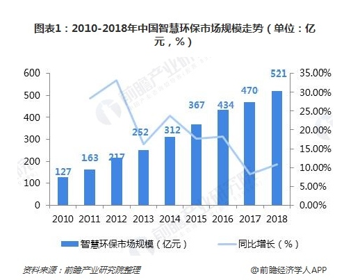 在“十三五”的環(huán)保政策熱潮以及ICT技術(shù)成熟背景下,我國智慧環(huán)保行業(yè)發(fā)展迅速,據(jù)測算,2018年行業(yè)規(guī)模為521億元,同比增長10.91%,2010-2018年行業(yè)復合增速達到19.31%。 一、市場規(guī)模:政策熱潮和技術(shù)發(fā)展雙催動,智慧環(huán)保市場增長空間大 “十三五...