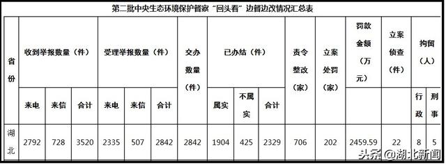 日前,生態(tài)環(huán)境部網(wǎng)站發(fā)文《第二批中央生態(tài)環(huán)境保護(hù)督察“回頭看”進(jìn)駐工作結(jié)束》。文中稱,截至12月6日,共收到群眾舉報(bào)49561件,經(jīng)梳理分析,受理有效舉報(bào)38133件,合并重復(fù)舉報(bào)后向地方轉(zhuǎn)辦37679件。地方已辦結(jié)26873件,其中,責(zé)令整改12240家;立案處罰2991家,罰款21414.36萬...