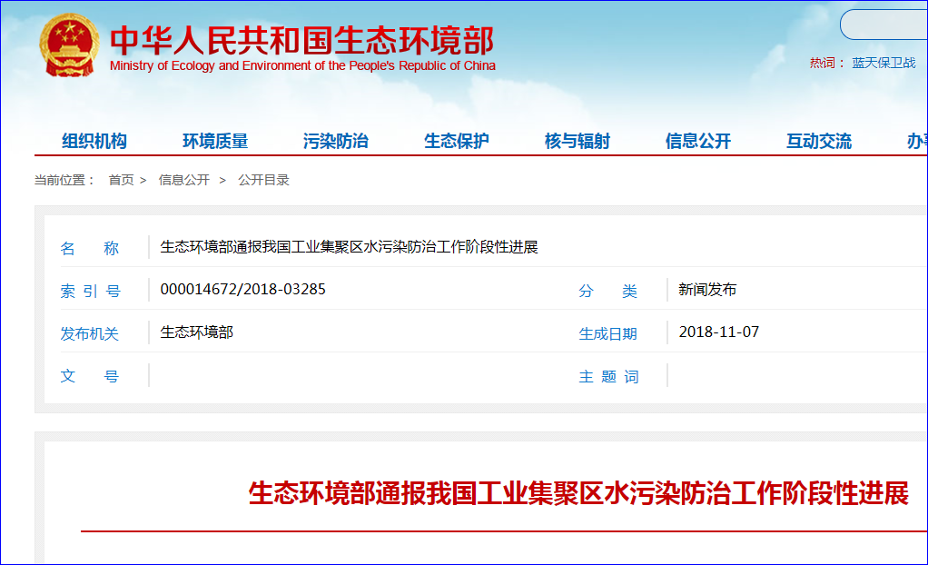 11月7日,生態(tài)環(huán)境部通報我國工業(yè)集聚區(qū)水污染防治工作階段性進(jìn)展。 為落實《水污染防治行動計劃》(以下簡稱《水十條》)有關(guān)工業(yè)集聚區(qū)應(yīng)按規(guī)定建成污水集中處理設(shè)施,安裝自動在線監(jiān)控裝置等要求,生態(tài)環(huán)境部會同相關(guān)部門督促指導(dǎo)各地,狠抓工業(yè)集聚區(qū)水污染防治。 截至2018年9月底,全國2411家涉及廢水排...