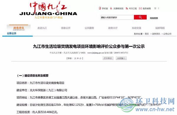 2018年10月17日,九江市政府網(wǎng)發(fā)布。在此之前,柴桑區(qū)政府網(wǎng)站分別于2017年11月22日()和2018年7月31日()發(fā)布兩次《九江市生活垃圾發(fā)電項目環(huán)境影響評價公眾參與第一次公示》。此第三次公示更改建設地址E115º42.48'、N29º45.06'到新位置E115&or...